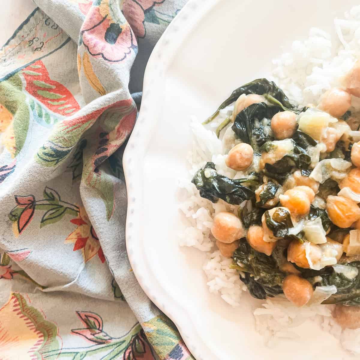 I love serving curried chickpeas with coconut milk on top of fluffy white rice, brown rice, or quinoa! A simple side salad is always yummy, or add some extra roasted veggies like butternut squash baked until they're soft and sweet. You could also make baked sweet potatoes and serve them topped with a big helping of spinach and chickpeas plus a dollop of Greek yogurt!